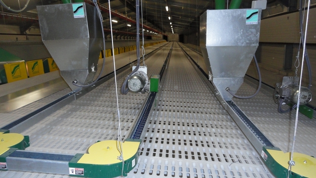 La vitesse de la chaine peut être de 18 ou 36 m/min, en garantissant une distribution des aliments rapide et en prévenant une migration des animaux.