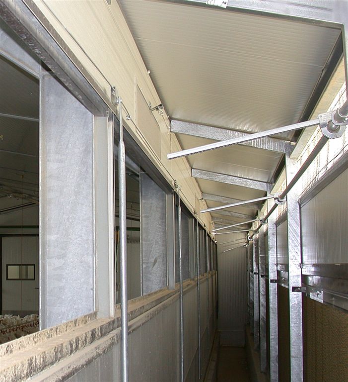 Когда температура снаружи высокая, и нормальная вентиляция не способна поддерживать оптимальную температуру внутри фермы, необходимо использовать системы охлаждения. Без них, результаты производства были бы плохими и стресс от чрезмерной жары может привести к нежелательной высокой смертностью животных.